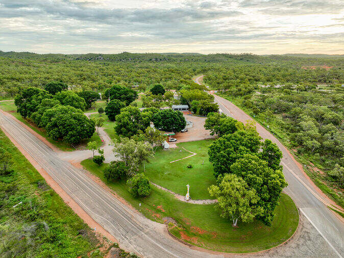 Heartbreak Hotel & Caravan Park is an iconic roadhouse‑style accommodation and stopover in Cape Crawford, Northern Territory, Australia, offering cabins, budget rooms, and powered or unpowered caravan sites with facilities like a restaurant, pool, showers, toilets and laundry; guests can book online or on arrival and enjoy nearby attractions such as scenic flights and the Caranbirini Conservation Reserve while travelling the outback.
