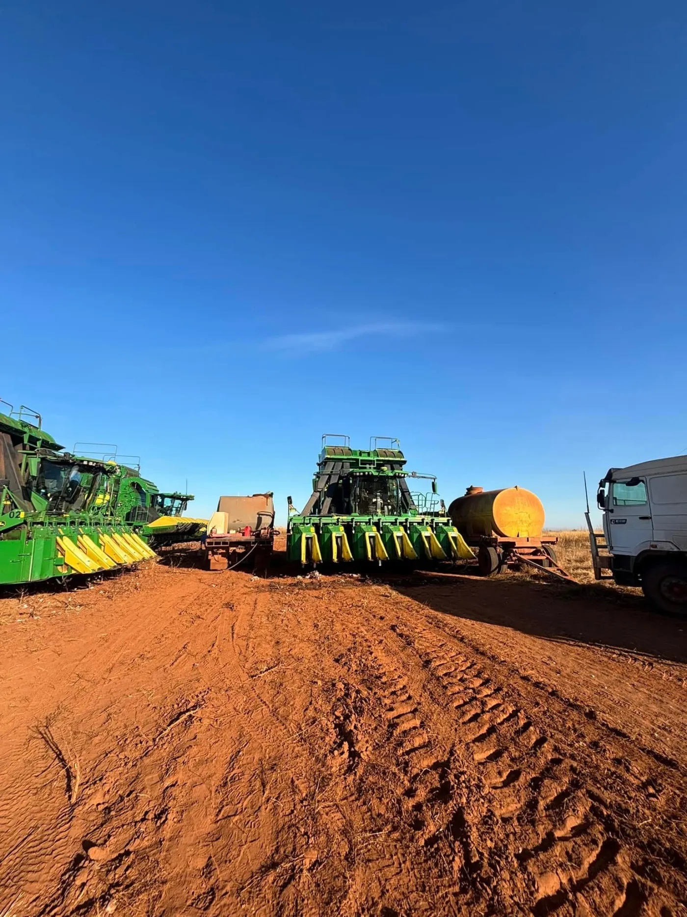 John Deere cotton pickers, strippers and headers, Mack and Kenworth trucks, and