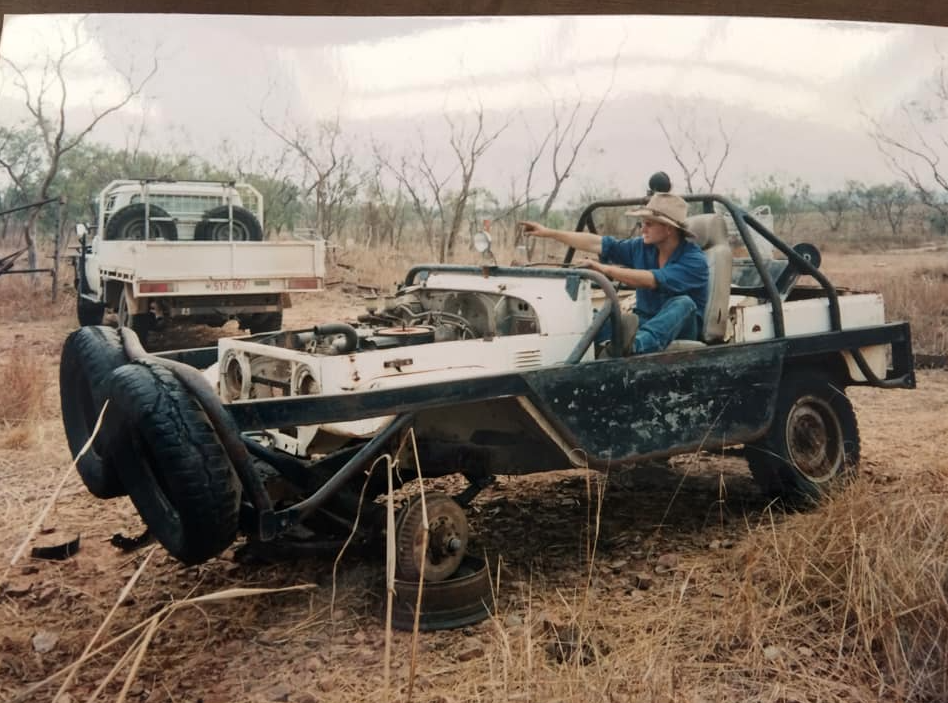 This was the bull catcher used on the back cover of Slim Dusty's iconic RINGERS FROM THE TOP END album in 1992… with him at the wheel is a young Richard Bradley (see below), son of David & Susan Bradley who owned Carlton Hill Station at the time in the East Kimberley.